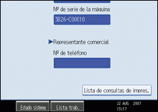 La función de consulta le permite comprobar los números telefónicos de contacto del servicio técnico para realizar reparaciones o pedir consumibles como, por ejemplo, tóner. Póngase en contacto con su técnico de servicio para comprobar lo siguiente: