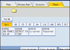 Нажимайте вкладку типа передачи для переключения типа передачи между следующими режимами: факс/IP-факс, интернет-факс, электронная почта или папка.