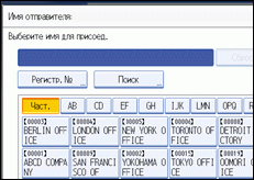 Чтобы выбрать отправителя, указав регистрационный номер, зарегистрированный в адресной книге, нажмите клавишу [Регистр. в„–].