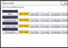 È possibile specificare le condizioni seguenti per le ricerche nella Rubrica: Nome, Destinazione fax, Indirizzo e-mail, e Nome cartella.