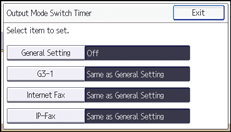 Selecting [Same as General Setting] in the [Output Mode Switch Timer] screen sets the same ID registered for "General Setting" in "Output Mode Switch Timer".